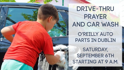 We'll be hosting a drive-thru prayer and car wash at O'Reilly Auto Parts in Dublin (right in front of the church) on